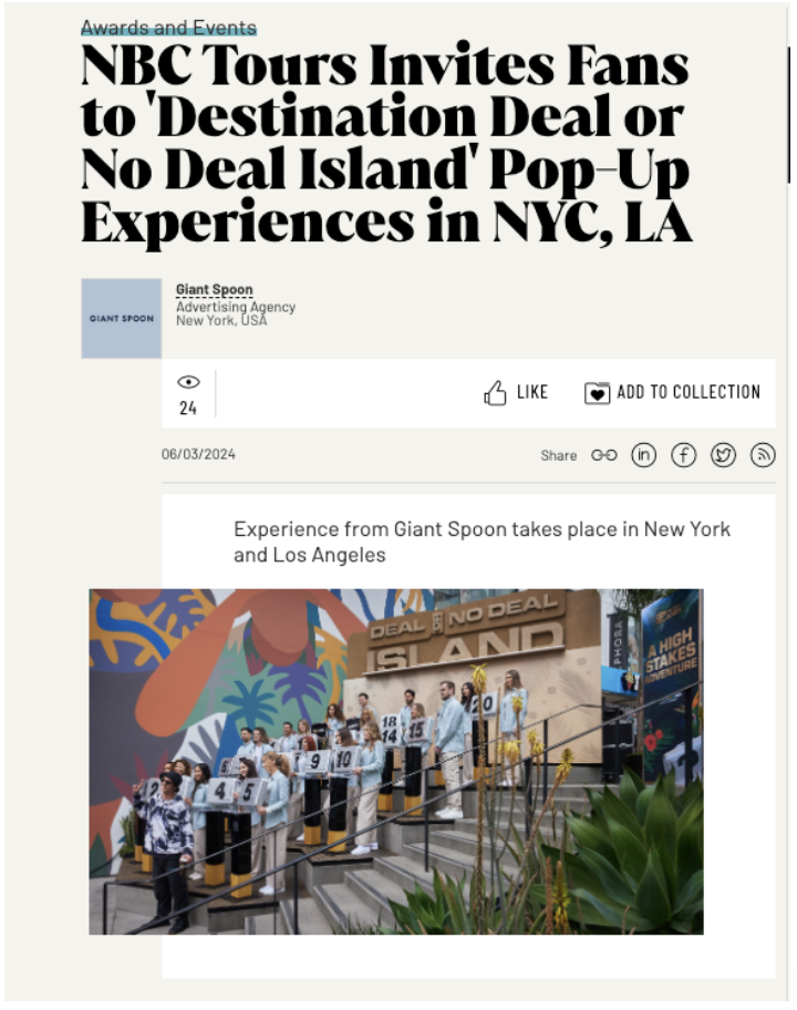 So we held two activations in the NYC Oculus and Ovation Hollywood in LA, with a fully functioning game featuring the iconic steps and actual briefcases from the show, warming up New York in the winter with real imported palm trees and all of the island vibes.